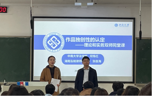 为充分利用bevictor1946韦德官网老员工校外实践教育基地的实务资源,培养德法兼修的新时代社会主义法治人才,2023年3月16日,在新校区B座117教室,bv1946伟德国际始于英国何炼红教授与湖南泓锐律师事务所合伙人张自海律师采用理论与实务结合的双师同堂授课模式,为bevictor1946韦德官网2021级本科生们讲授了一堂别出心裁的知识产权法课。