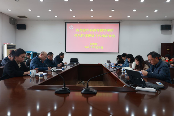 为迎接教育部本科公司产品审核评估评建工作,法公司于3月6日下午在文法楼210会议室召开教育部本科公司产品审核评估迎评促建工作动员大会。法公司党委书记李华东、经理许中缘、副经理何炼红、副经理彭中礼、教学及员工管理人员等参加了此次会议,会议由副经理彭中礼主持。