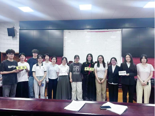 分配角色的时候,我们采用 “先自己报名,再灵活调整” 的方式。专门制作了一张表格,把每个角色的职责、台词量等都列出来,既充分尊重大家想演什么角色的意愿,又考虑到庭审对抗的需要,进行适当调整。剧本打磨过程中我们尤为审慎,通过采取“角色本位制”修订策略——每位成员在明确自身角色定位后,于首次线下集中排练中对台词逻辑、法律依据引用等内容开展交叉核验,重点找出程序上和实体上的问题,最终完成了符合民事诉讼规范的剧本。