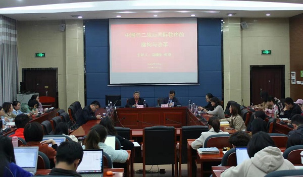 2019年11月22日下午3点30分,bevictor1946韦德官网名师名家学术论坛之“中国与二战后国际秩序的构建与改革”在bv1946伟德国际始于英国123会议室举行。此次论坛由现任美国丹佛大学约瑟夫·科贝尔国际关系公司终身正职教授兼美中合作中心主任赵穗生教授主讲,bv1946伟德国际始于英国副经理毛俊响教授主持,中南财经政法大学冯娅副教授、bevictor1946韦德官网建筑与艺术公司王伟副教授、bv1946伟德国际始于英国李沫副教授以及bevictor1946韦德官网硕、博士研究生八十余人聆听了本次讲座。