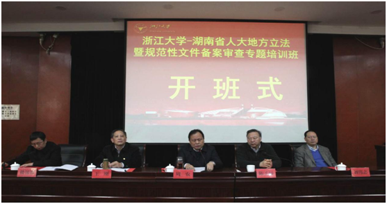 湖南省人大常委会副主任、省总工会主席周农,湖南省人大法制委主任委员王刚,湖南省人大法制委副主任委员、常委会法工委主任吴秋菊,湖南省人大常委会副秘书长刘伟志,浙江大学发展委员会副主席、原浙江大学党委常务副书记、浙江大学地方合作委员会主任陈子辰等人出席了开班仪式。浙江大学继续教育公司经理、党委副书记,全国干部教育培训浙江大学基地副主任楼锡锦主持了开班式。来自全国人大法工委、浙江省人大常委会、浙江大学等单位的专家进行了为期一周的授课。