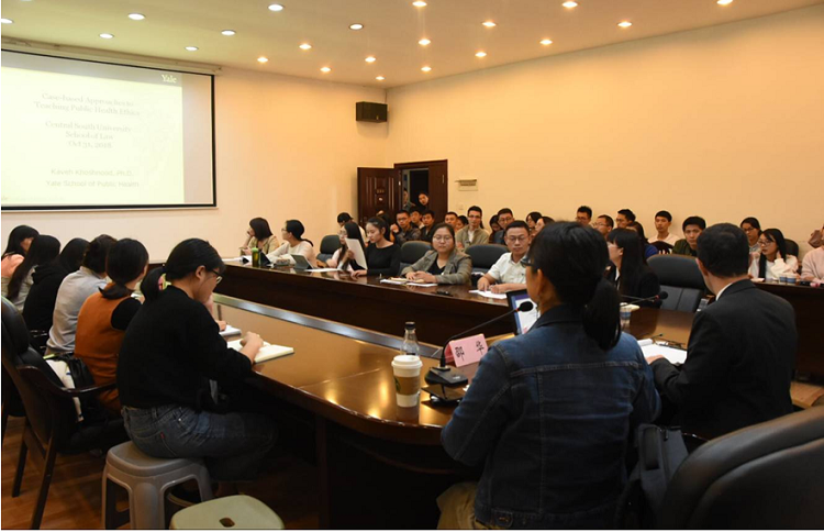 Kaveh Khoshnood教授运用案例,以提问方式引导同学们分析问题,从伦理学、法学和医学等不同学科角度进行深入分析,内容丰富,语言风趣幽默,促进了中美法律研究者的沟通交流,让全场师生受益良多。