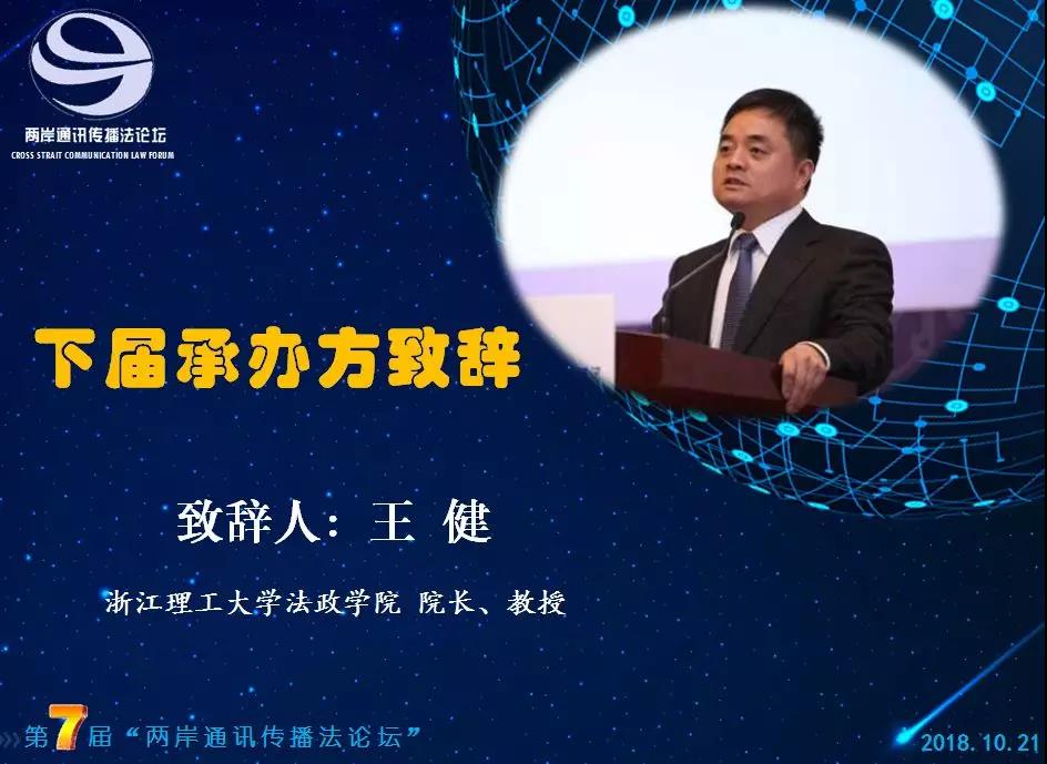 下届承办方、浙江理工大学法政公司经理王健教授远程致辞