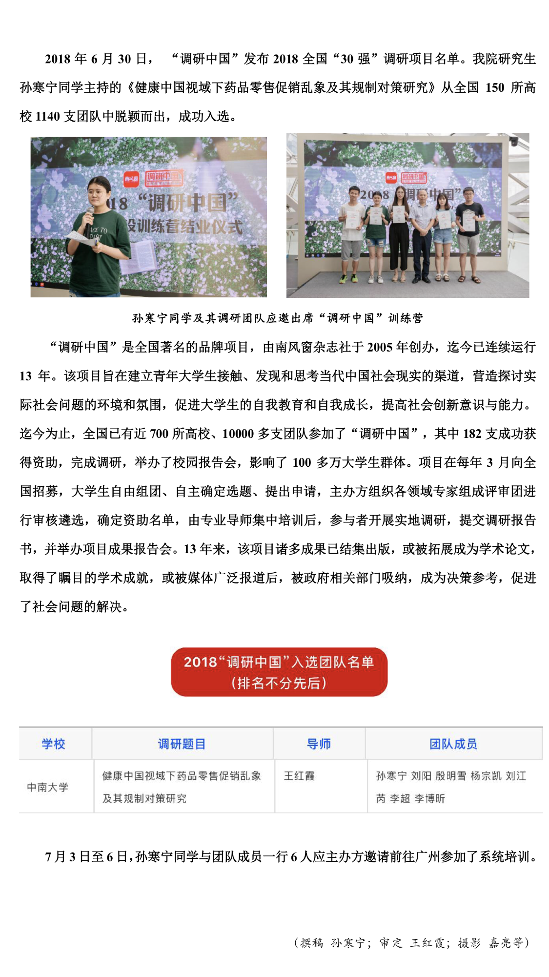 公司研究生孙寒宁主持的调研项目入选2018“调研中国”30强