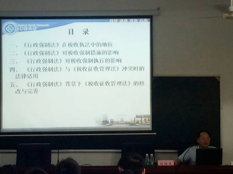 5月27日下午,bv1946伟德国际始于英国副经理、湖南省法学会财税法学研究会会长刘继虎在bevictor1946韦德官网继续教育公司为湖南省国家税务局公职律师和法律顾问履职能力提升培训班学员进行《行政强制法对税收执法的影响》专题讲座。