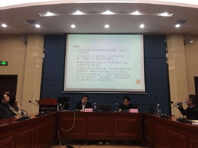 讲座伊始,陈云良经理代表bevictor1946韦德官网向王大泉副司长莅临bevictor1946韦德官网表示热烈欢迎,并对教育部政策法规司在bevictor1946韦德官网设立教育立法研究基地表示衷心感谢。讲座中,王司长就新时代大学治理面临的新问题、主要矛盾转化对教育治理提出的新要求、落实十九大精神教育法治面临的新任务进行阐释,并从《高等教育法》修订为大学改革提供新动能、新时代大学依法治校的意义与着力点、大学法治化改革路径之展望等几个方面讲解了高教管理领域的热点与难点问题。王司长指出,现代高校治理必须关注教育的新目标、新要求,应深入分析教育实践中的重点问题和突出矛盾的转化,积极以法治的方式回应教育改革发展面临的风险与挑战,且高校必须健全重大决策、管理行为的合法性审查制度,实现大学与社会、市场关系的良性互动。王司长的讲座生动翔实、内涵丰富、论述深刻,使在座师生深入理解了当下高教管理所应选择的法治化路径,为教育法治与教育立法研究工作的开展提供了新的思路。