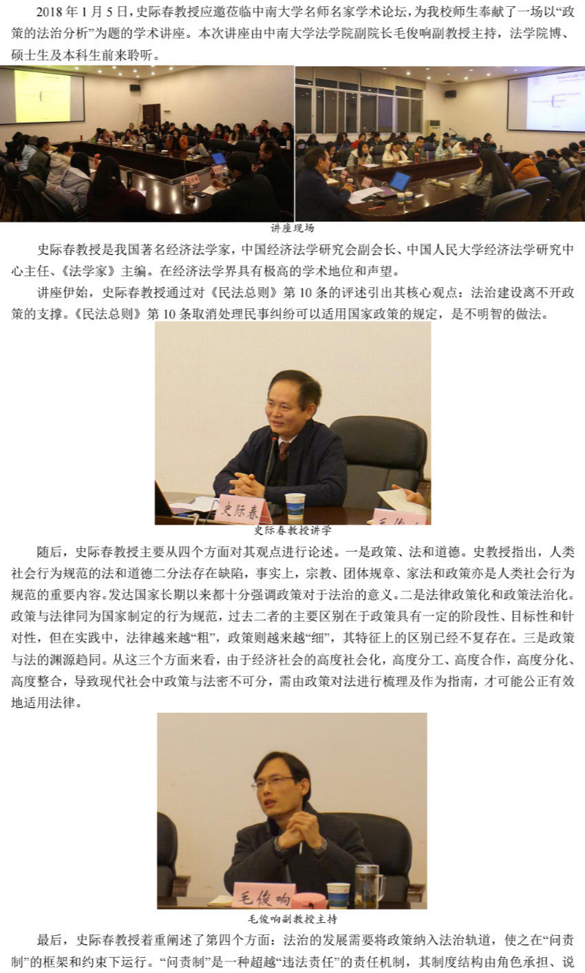 史际春教授做客名师名家论坛 畅谈“政策的法治分析”