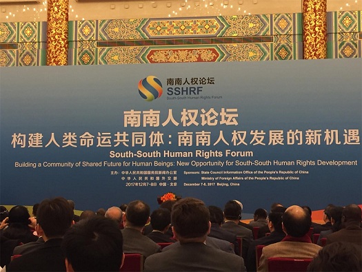 2017年12月7日至8日,首届“南南人权论坛”在北京举行。中国国家主席习近平致贺信,中共中央政治局委员、中央宣传部部长黄坤明出席论坛开幕式,宣读习近平主席贺信并致辞,外交部部长王毅出席论坛开幕式并致辞。本届论坛由中华人民共和国国务院新闻办公室、中华人民共和国外交部共同举办,来自世界70多个国家和国际组织的300余位代表出席论坛并积极参与讨论,共商发展中国家和世界人权发展大计。