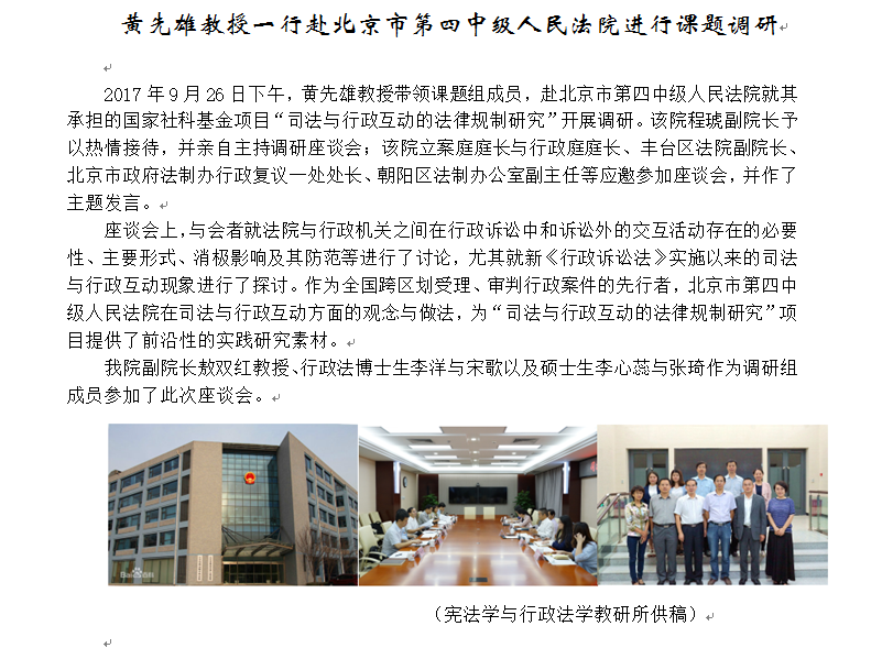 黄先雄教授一行赴北京市第四中级人民法院进行课题调研