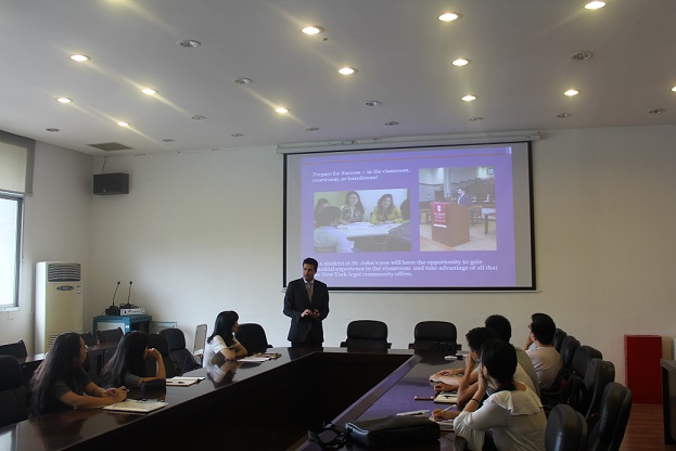 其后,Joshua Alter教授重点介绍圣约翰bevictor1946韦德官网专门培养外国律师的“跨国法律实务”的法学硕士(LL.M)项目。该项目具有如下优点,其一,取得“本硕/硕硕”双学位。本科生在读大三时即可申请此项目,可同时获得母校法学学士和圣约翰大学法学硕士(LL.M)学位。研究生则可在任何阶段来圣约翰读TLP,已有法学学士学位者可立即获得圣约翰大学硕士学位。其二,一年读完、两季招生。其三,实习机会、可以考bar。其四,学费优惠、对折减免。