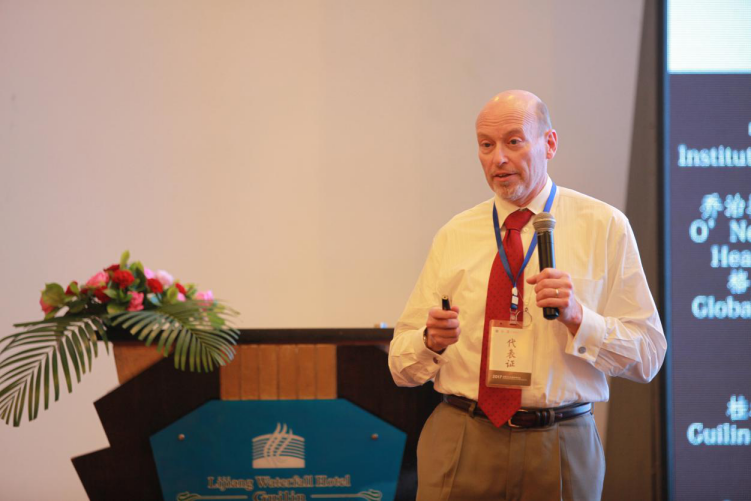 白毅、何翔、Lawrence Gostin、黄大方等先后致辞。白毅在致辞中表示2017年是贯彻落实全国卫生与健康大会精神和实施“十三五”深化医药卫生体制改革规划的重要一年,是形成较为系统的基本医疗卫生制度框架、完成医改阶段性目标任务的关键一年。研讨会的召开必将促进我国全球卫生法研究的发展。何翔在致辞中指出,本次研讨会的召开凝聚了世界各国卫生法学者、专家的智慧与心血,必将为我国医药卫生体制改革、实施中国全球卫生治理战略贡献智慧。他还表示医疗卫生产业已经成为桂林市的重要发展方向,希望与会专家学者能够为桂林市的医疗卫生事业献计献策。Lawrence Gostin在致辞中指出全球卫生法研究对于解决国际卫生健康问题至关重要,同时他表达了对本次会议主办单位、承办单位的真挚感谢,并希望有更多机会与中国卫生法学者交流。广西碧联投资有限责任公司、桂林福彗健康产业投资有限公司董事长黄大方的代表在致辞中对参会学者表示欢迎,并表示企业参与学术交流平台的搭建是企业承担社会责任的重要举措,很荣幸参与支持研讨会。