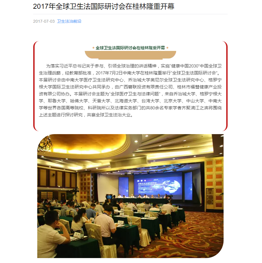 2017年全球卫生法国际研讨会在桂林隆重开幕