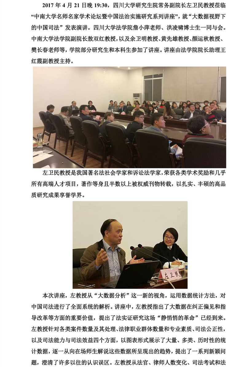 著名法学家左卫民教授做客中南 运用大数据“解密”中国司法