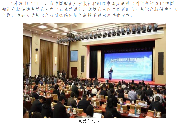 何炼红教授应邀出席2017中国知识产权高层论坛并作发言