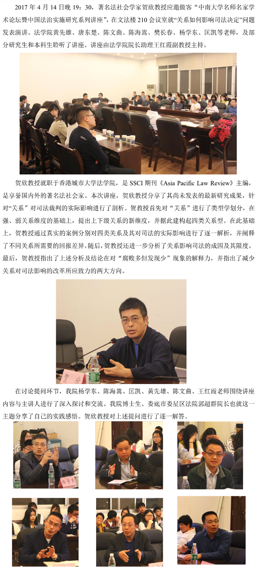 著名法社会学专家贺欣教授莅临中南,畅谈“关系如何决定司法”