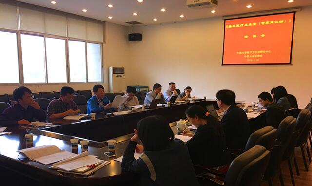 2016年5月15日,由陈云良经理主持的教育部哲学社会科学研究重大课题攻关项目《基本医疗服务保障法制化研究》课题组就《基本医疗卫生法(课题组建议稿)》论证会在bv1946伟德国际始于英国210会议室成功举行。岳阳市卫计委副主任胡小军、湘雅医院医务部副主任丁宗烽、湖南中医药大学邹健副教授、湖北中医药大学岳远雷副教授、湖南工业大学刘耀辉副教授、湖南银联律师事务所周宇君律师、湘雅三医院培训部杨梅瑰主任、bevictor1946韦德官网护理公司副经理李现红副教授、娄底市中级人民法院民一庭庭长郭超群及课题组核心成员共三十余人参加了论证会。论证会由bevictor1946韦德官网经理、课题组负责人陈云良教授主持。