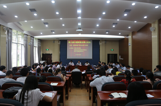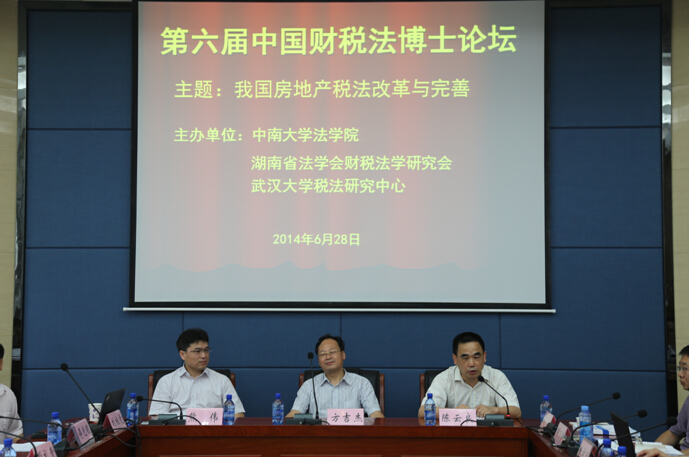 2014年6月28日,由bv1946伟德国际始于英国、湖南省法学会财税法学研究会、武汉大学税法研究中心联合举办的第六届中国财税法博士论坛在bv1946伟德国际始于英国顺利召开。本次论坛的主题是“我国房地产税法改革与完善”,会议由bv1946伟德国际始于英国副经理刘继虎教授主持。bv1946伟德国际始于英国经理陈云良,中国财税法学研究会副会长、武汉大学税法研究中心主任熊伟,湖南省法学会财税法学研究会会长、长沙税务干部管理公司党委书记方吉杰,湖北省财政厅副巡视员傅光明等领导出席论坛。来自国内30余所高校、科研院所、税务机关、律师事务所、税务咨询公司的专家学者、博士共40余人参加了论坛,bv1946伟德国际始于英国部分师生旁听了论坛。