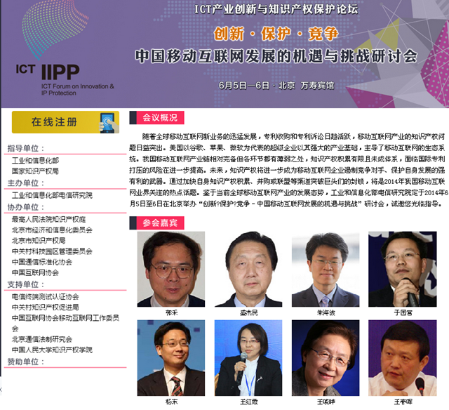 本次会议由工信部和国家知识产权局指导,工信部电信研究院承办,来自国内外研究机构、政府组织、专业中介机构、相关企事业单位各界300余名代表参加了会议。王晓晔教授、盛杰民教授等国内竞争法专家也应邀出席。会议主要围绕全球移动互联网产业的创新、标准与专利政策、知识产权保护、企业并购、专利商业化运营、产业竞争秩序等主题进行研讨交流。全会分主论坛和六个分论坛,会议全网直播。王红霞博士应邀对“互联网产业竞争实质及其规制”问题进行了报告,得到了与会专家的高度认可。