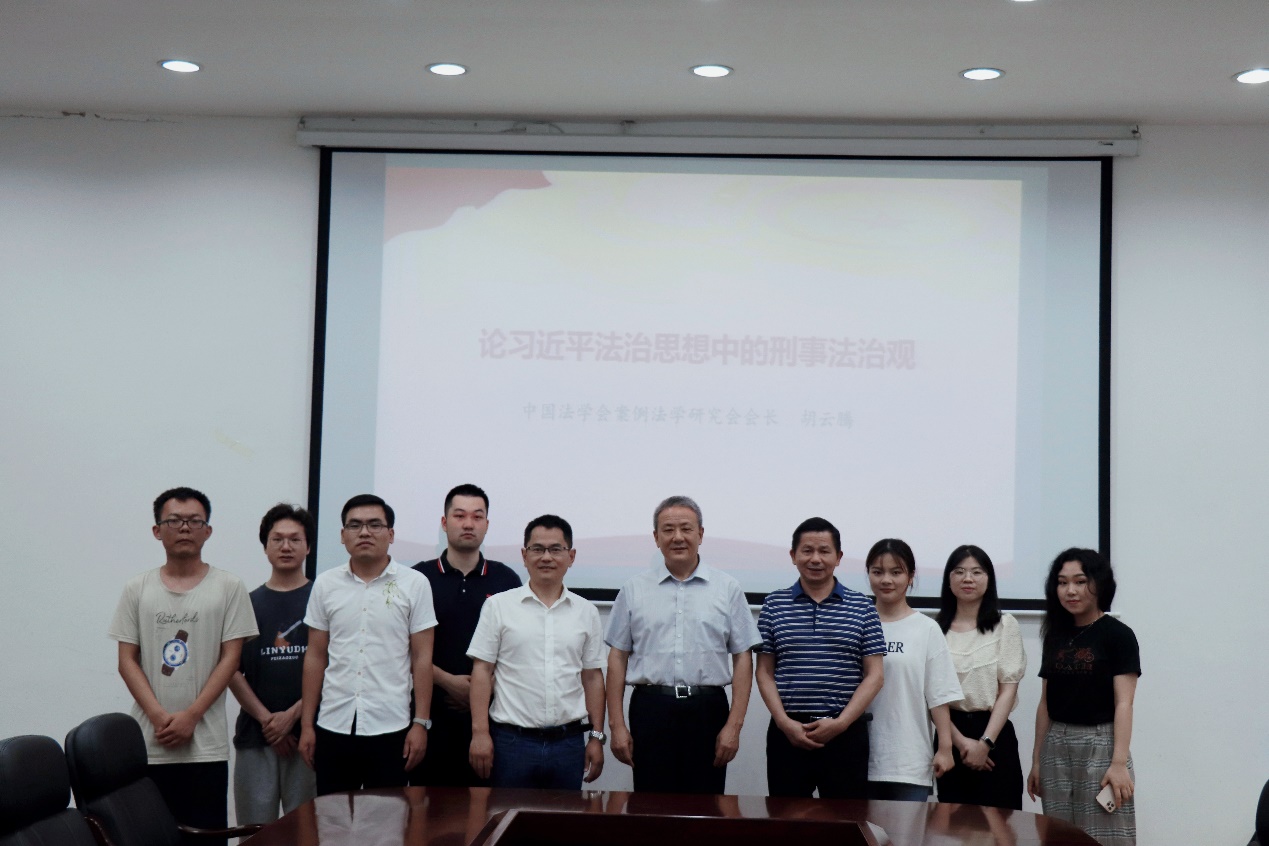 接着,胡云腾会长从十个方面详细阐述了习近平总书记的刑事法治观。一是坚持党的绝对领导,确保政法单位这个刀把子牢牢掌握在党和人民手中;二是坚持以人民为中心,切实保障人民群众切身利益;三是保证公正司法,努力让人民群众在每一个司法案件中感受到公平正义;四是坚持源头治理,着力解决刑事司法领域违法违规干预问题;五是以最坚决的意志、最坚决的行动扫除政法领域的腐败现象,培养忠诚、干净、担当、过硬的政法队伍,建立健全有效的权力制衡的体制;六是除恶务尽,维护国家政权和政治安全,不断增强人民群众获得感、幸福感、安全感;七是推进以审判为中心的诉讼制度改革,有效防范冤假错案;八是推进案件繁简分流,提高案件质量和效率;九是重视产权保护,坚持以发展的眼光看待民营企业历史上曾经有过的一些不规范行为;十是执法办案要坚持法理情兼顾,努力实现最佳的法律效果、政治效果、社会效果的统一。通过胡云腾会长生动有趣、详细耐心的介绍,师生们加深了对习近平法治思想中刑事法治观的理解认识。