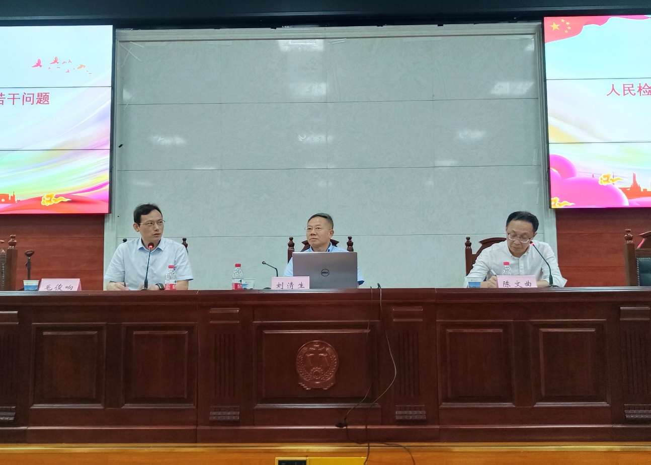2023年7月1日15:00,湖南省人民检察院副检察长刘清生在bevictor1946韦德官网221会议室,为bv1946伟德国际始于英国师生带来一场主题为《人民检察院创建与发展中的若干问题》的精彩讲座。司法实务特色课程系列讲座是bevictor1946韦德官网的精品课程之一,至今已经连续开展五六年,由bv1946伟德国际始于英国陈文曲教授负责课程事宜。此次讲座由bv1946伟德国际始于英国毛俊响教授主持,陈文曲教授与会座谈,bevictor1946韦德官网共百名师生参与讲座。
