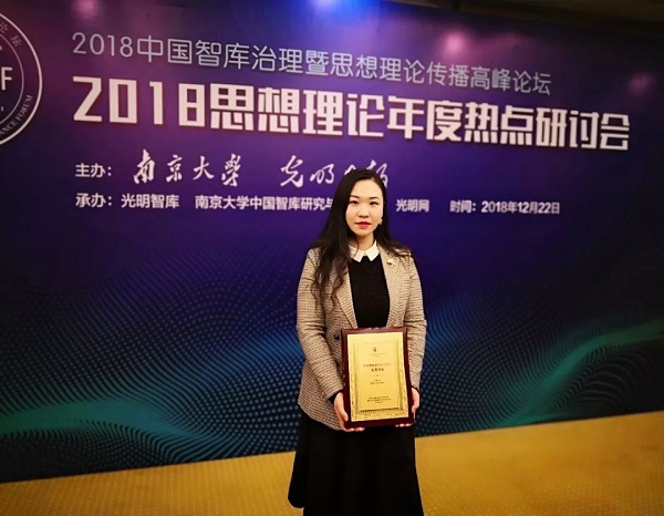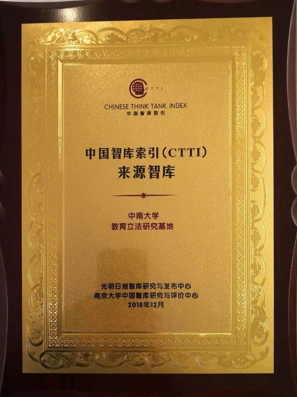 2018年12月22日,由南京大学和光明日报共同举办的2018中国智库治理暨思想理论传播高峰论坛在南京钟山宾馆隆重举行。会议发布了2018CTTI来源智库增补名录,bevictor1946韦德官网教育立法研究基地成功入选;基地执行主任、博士生导师徐靖副教授应邀参加本次论坛,并获颁入选证书。