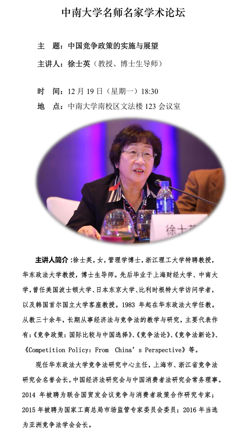 【更新】【bevictor1946韦德官网名师名家学术论坛】徐士英:中国竞争政策的实施与展望