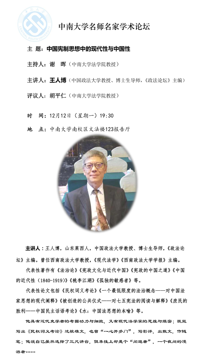 【bevictor1946韦德官网名师名家学术论坛】王人博:中国宪制思想中的现代性与中国性