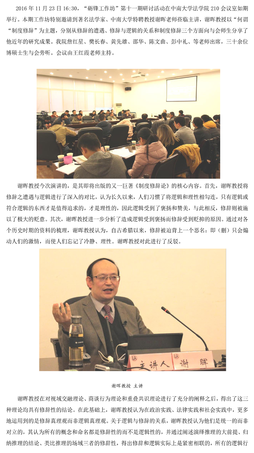 [砺锋工作坊]第十一期 著名法学家谢晖教授剖析“制度修辞”