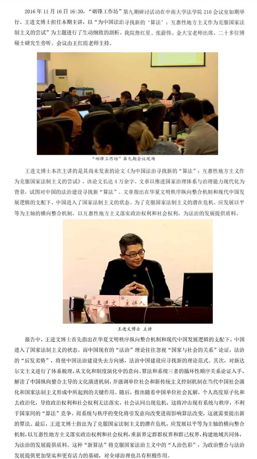 [砺锋工作坊]第九期 王进文博士畅谈互惠性地方主义