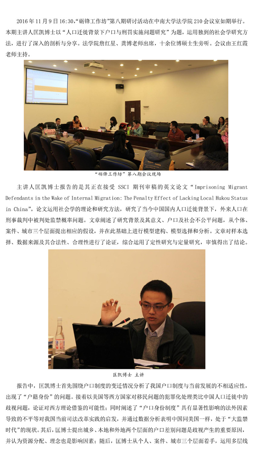 [砺锋工作坊]第八期 匡凯博士分享SSCI新作,求证户口与刑罚实施关系