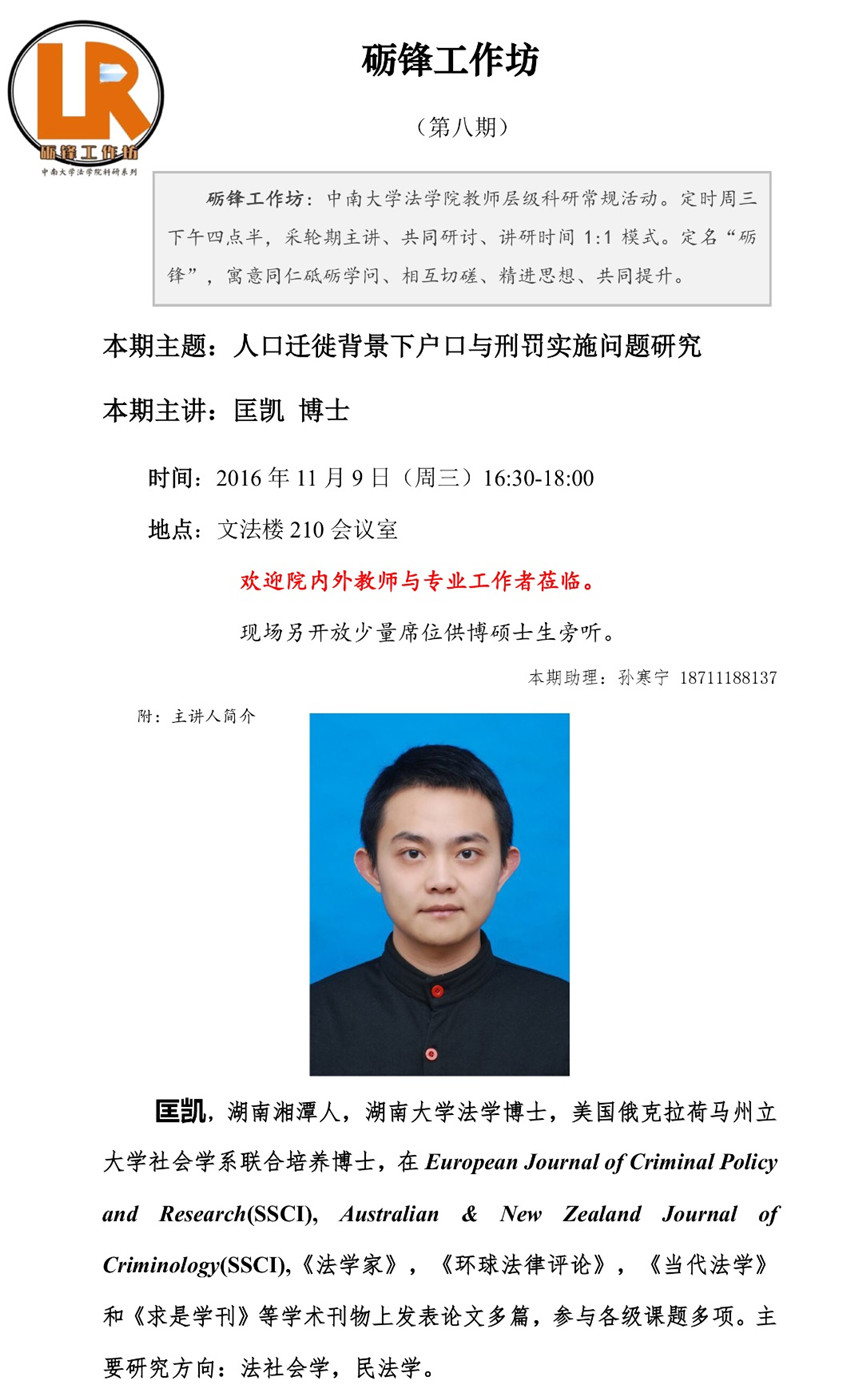 【砺锋工作坊(第八期)】匡凯:人口迁徙背景下户口与刑罚实施问题研究