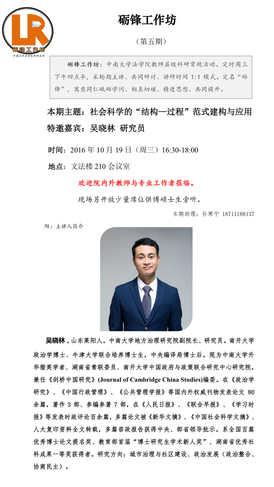 【砺锋工作坊】第五期 吴晓林副教授首倡“结构-过程”范式