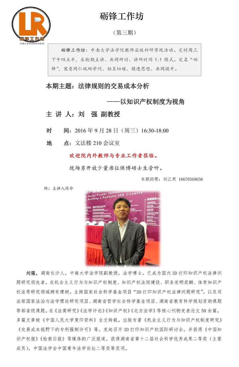 【砺锋工作坊】第三期 刘强副教授畅谈法律规则的交易成本分析