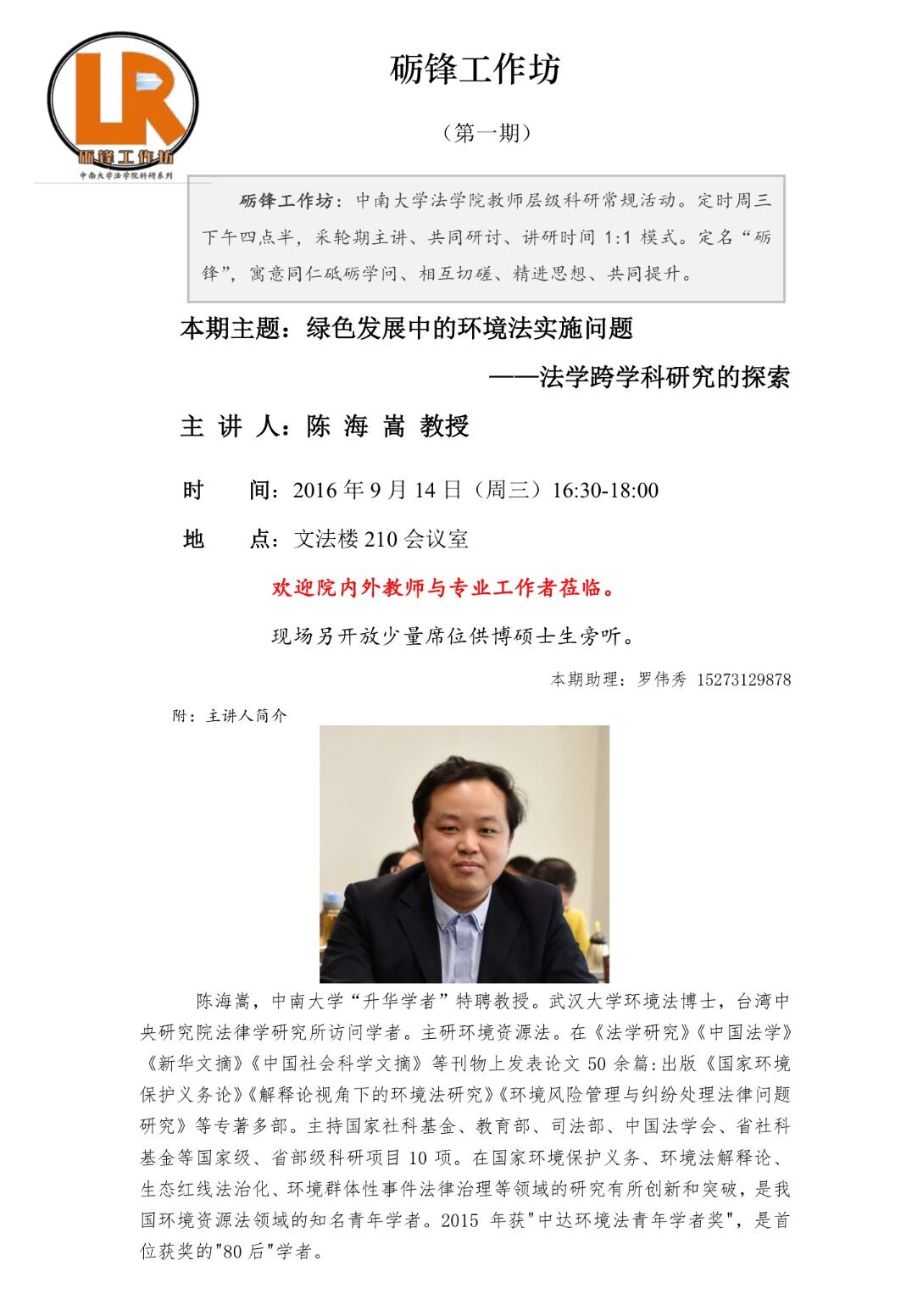 【砺锋工作坊(第一期)】陈海嵩:绿色发展中环境法实施问题