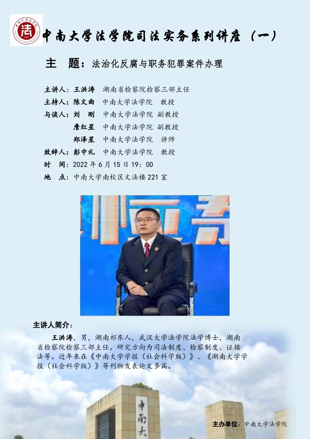 【讲座预告】王洪涛:法治反腐与职务犯罪案件办理