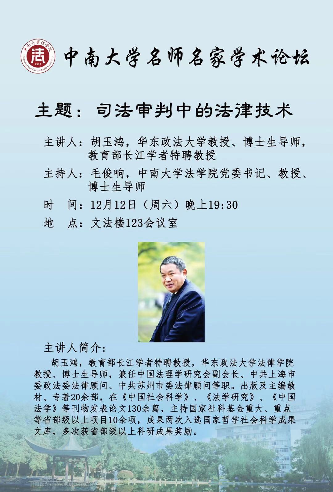 【讲座预告】胡玉鸿:司法审判中的法律技术