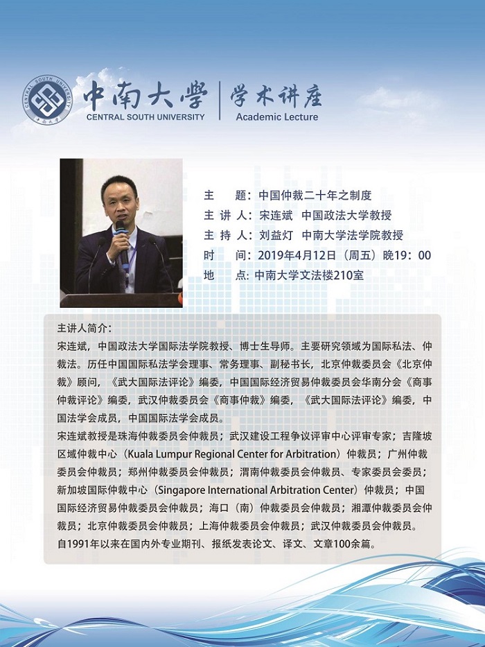 【讲座预告】宋连斌:中国仲裁二十年之制度