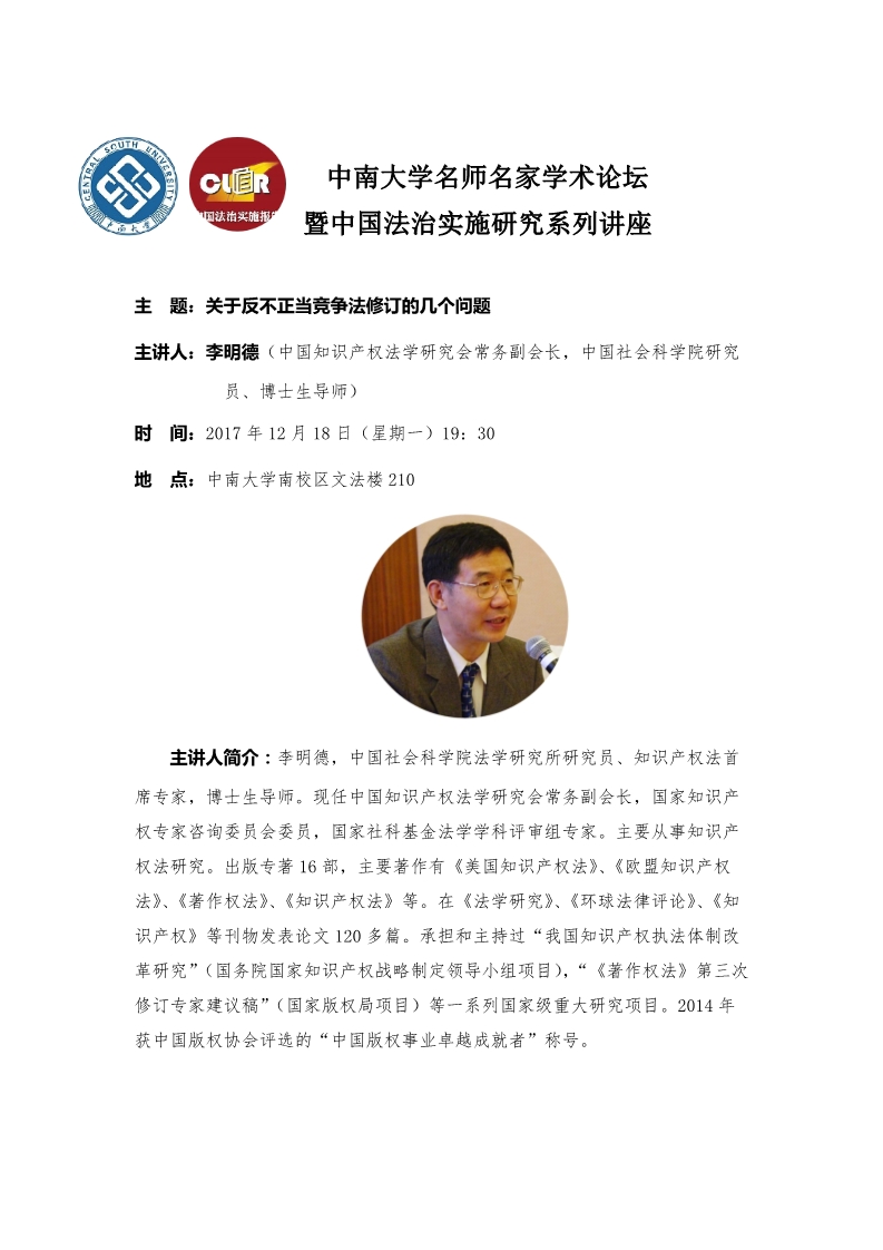 【bevictor1946韦德官网名师名家学术论坛】李明德:关于反不正当竞争法修订的几个问题