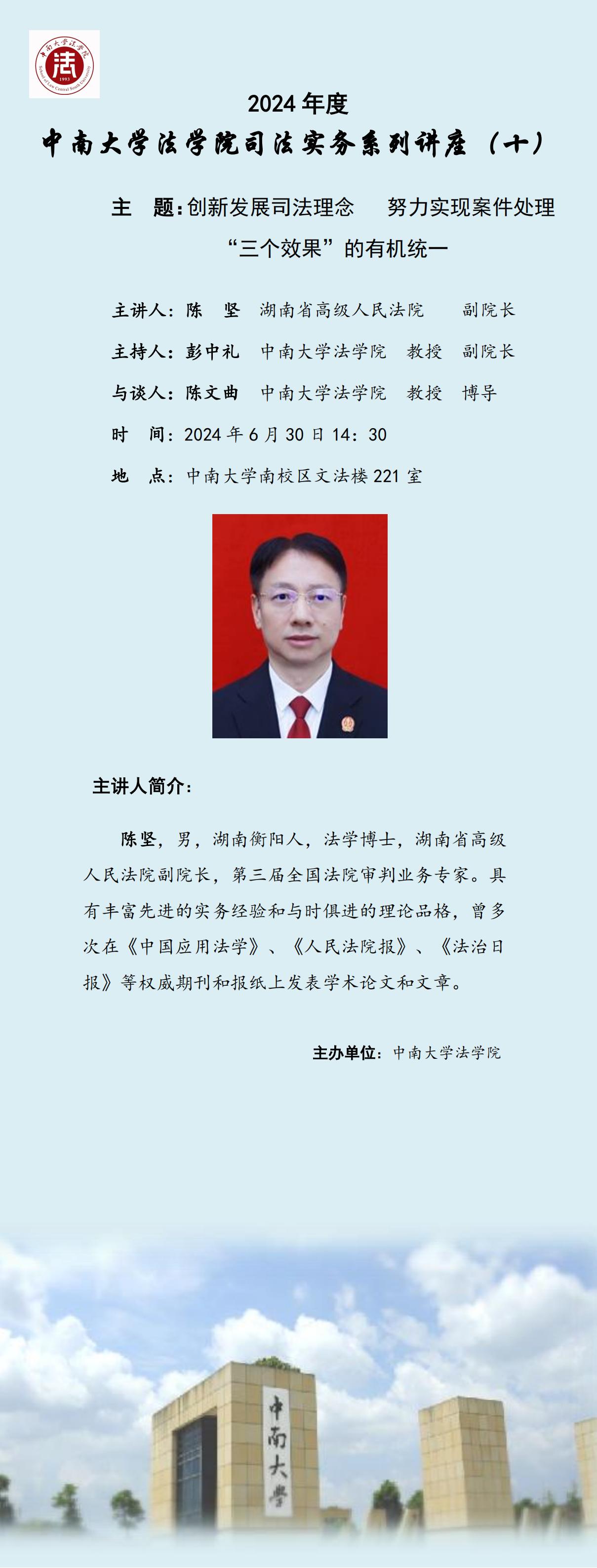 【讲座预告】陈坚:创新发展司法理念 努力实现案件处理“三个效果”的有机统一