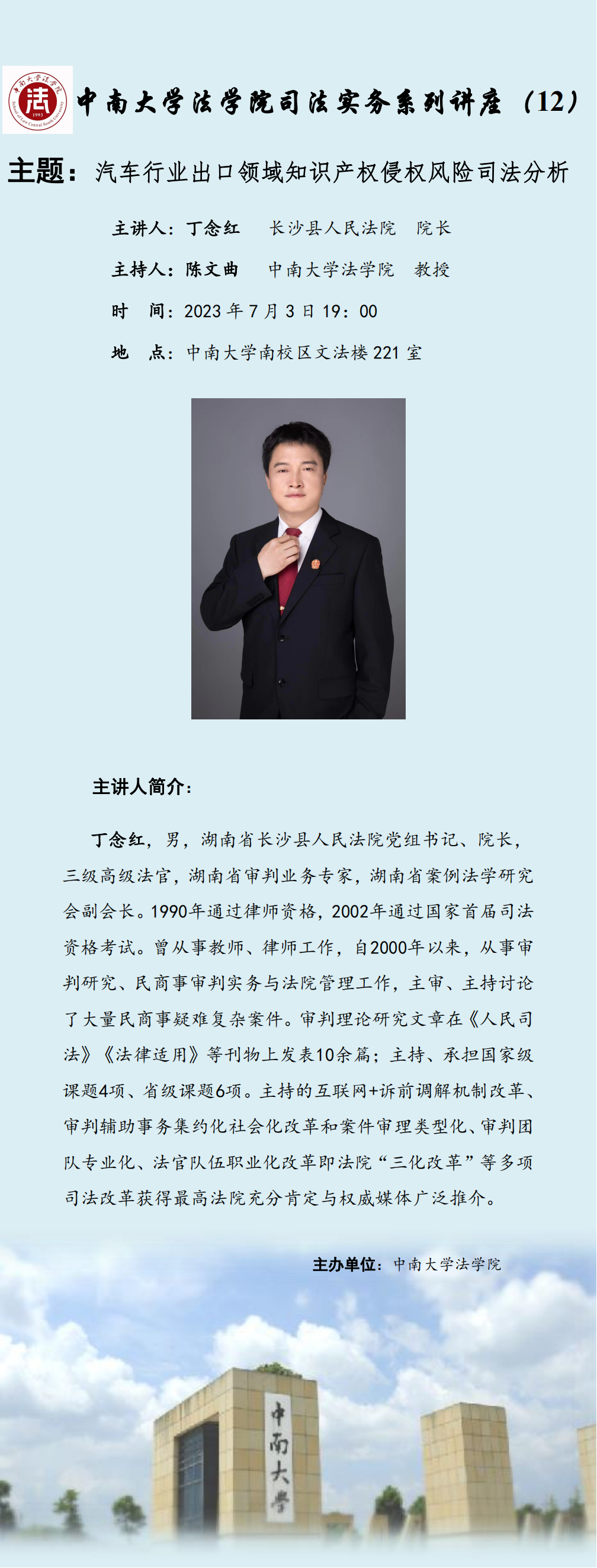 【讲座预告】丁念红:汽车行业出口领域知识产权侵权风险司法分析