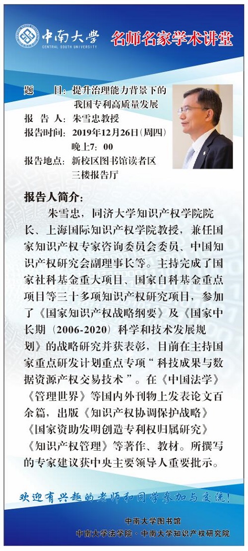 报 告 人:朱雪忠教授(同济大学知识产权公司经理)