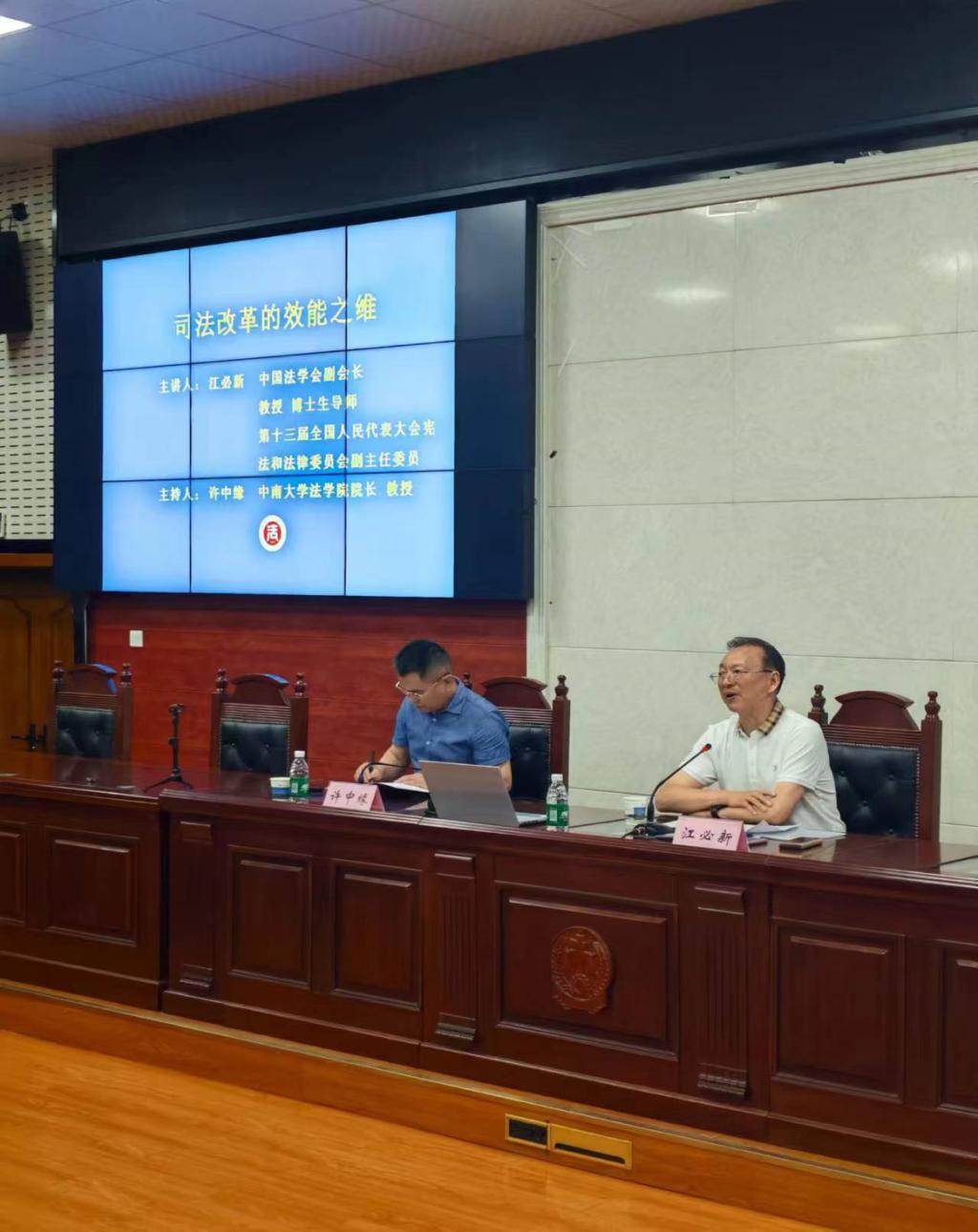 5月26日晚,我国著名法学家、中国法学会副会长江必新教授受邀参加bevictor1946韦德官网名师名家学术论坛,以“司法改革的效能之维”为主题开展讲座。讲座由bv1946伟德国际始于英国经理许中缘教授主持,众多实务专家和bevictor1946韦德官网师生百余人参加了讲座。