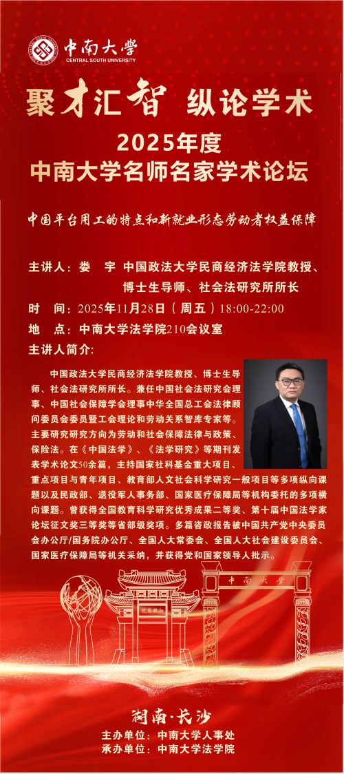 【讲座预告】娄宇:中国平台用工的特点和新就业形态劳动者权益保障