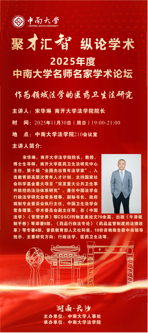 【讲座预告】宋华琳:作为领域法学的医药卫生法研究