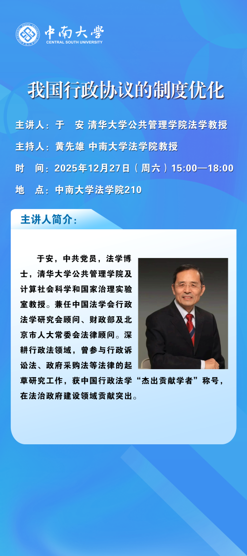 【讲座预告】于安:我国行政协议的制度优化