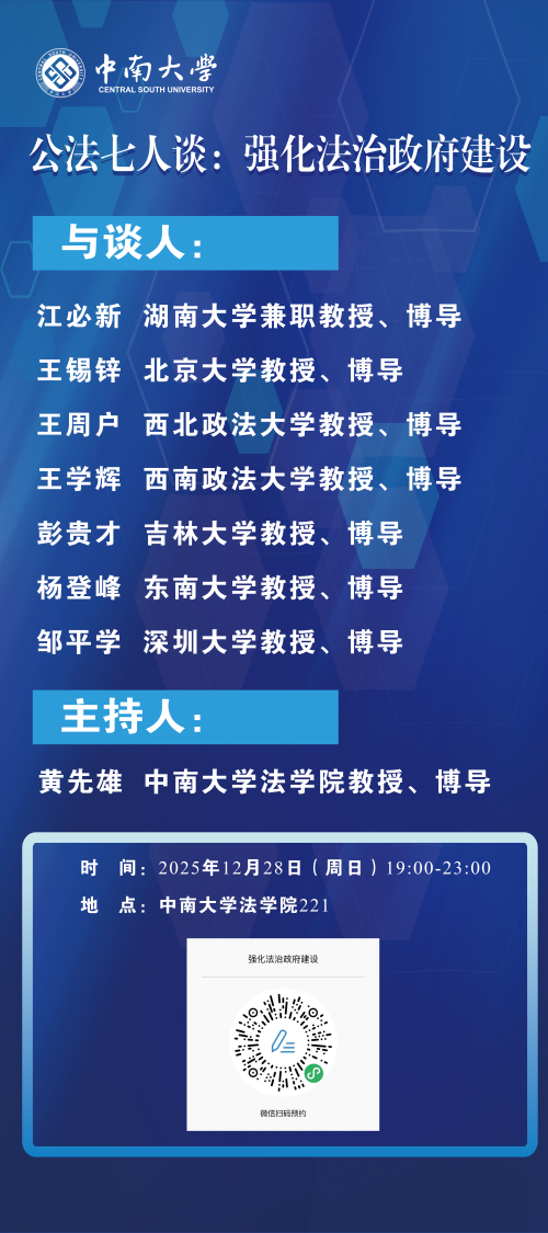 【讲座预告】公法七人谈:强化法治政府建设