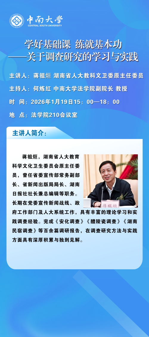 【讲座预告】蒋祖烜:学好基础课 练就基本功--关于调查研究的学习与实践