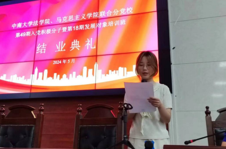 首先,由入党积极分子代表燕靓颖同学发表结业感言。她讲述了本次党校学习让同学们“入博学之堂,提升理论素养”“承优良之风,加强党性修养”“汇百家之言,更新发展观念”。最后,她呼吁同学们脚踏实地、全面发展,为国家发展建设贡献自己的力量。
