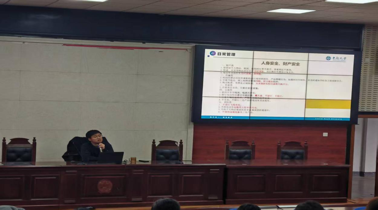 大会的第一项议程,辅导员彭梓熙细致阐述了日常管理对于员工成长与发展的重要性,通过引用一系列具体案例生动地向与会员工们传达了关注个人安全、维护财产安全以及遵守校规校纪的紧迫性和必要性,引导员工们培养良好的学习与生活习惯,提升自我管理和约束能力。