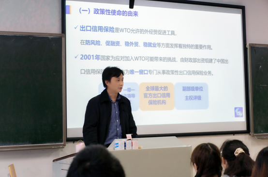 鉴于中信保湖南分公司的主要工作内容与国际法专业员工的重要学习内容“海外投资保险制度”等具有紧密联系性,本次共建活动由陈立同志以中信保的政策使命和信保护航企业出海之路为主题与参与活动的党员以及员工们进行分享。陈立同志结合中信保的经典项目案例,详细讲解了中国信保为我国企业出海所提供的各项保险服务:短期贸易险、出口特险、中长期险和海外投资险。陈立同志指出,中国信保现阶段主要承担了支持外贸企业复工生产、服务小微企业、维护全球供应链稳定等一系列稳外贸稳外资的政策性使命。